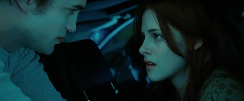 贝拉之于爱德华,就如羊之于狼,他一边喜欢她想要靠近她,一边又害怕靠得太近会伤害她,爱一个人就是会如此的小心翼翼呀。有一幕我很喜欢,爱德华出现在贝拉的家中,想要亲吻贝拉,小心翼翼的试探,缓缓靠近,轻轻吻上,吻到深情处,却又靠意志力把自己从贝拉身上推开,他怕自己失控伤害了贝拉,贝拉对他就像毒药一样,有着致命的吸引力。性张力真的满满。