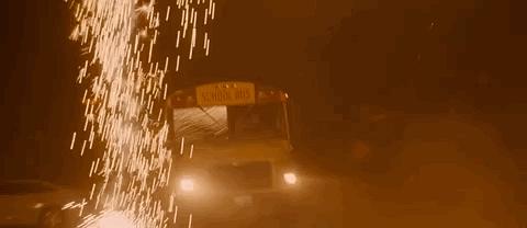最终,凯文做了一个疯狂的决定:驾驶校车穿越火海……